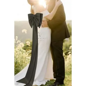 Ayervici Women's Detachable Large Bow Train for Wedding Formal Dress Big Satin Double Knot Waist Sash Belt Sweep Train for Formal Party(Black)