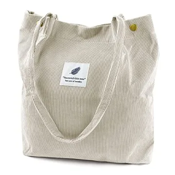 Ayieyill Corduroy Tote Bag for Women Canvas Shoulder Cord Purse with Inner Pocket(Beige)