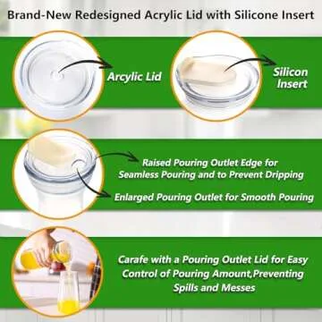 AYL Set of 4 Glass Carafes with Lids (1 Liter) – Clear Glass Water Pitchers and Beverage Serveware for Mimosa Bars, Brunch, Parties, Wine, Juice, Milk, Iced Tea, and Lemonade with Easy-Pour Spout Lids