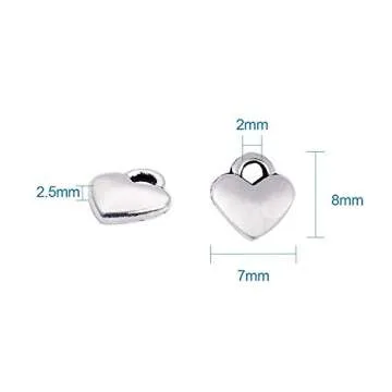 Aylifu 100 Pieces Polished Puff Love Heart Charm Mini Metal Silver Heart Pendants Drops Charms Pendants for Necklace Bracelet Earring