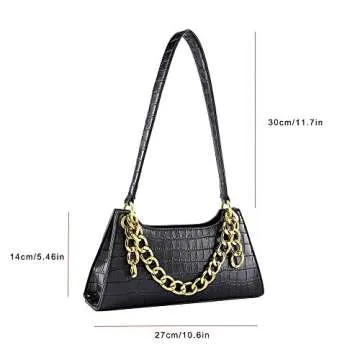 Ayliss Women Clutch Shoulder Handbag Classic Small Tote Purse Retro Wallet Bag Golden Chain Handbag PU Leather with Zipper (Black)