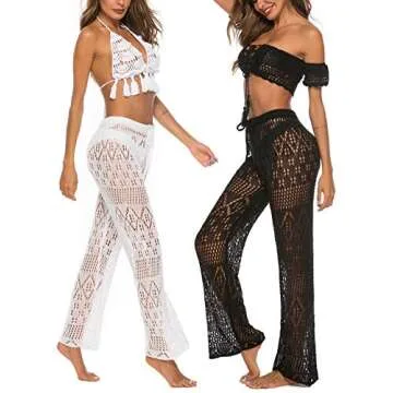 Ayliss Women Crochet Lace Swim Pants Knitted Hollow Out Cover Up Pants High Waist Fishnet Swimsuit Beach Pants (White 2)