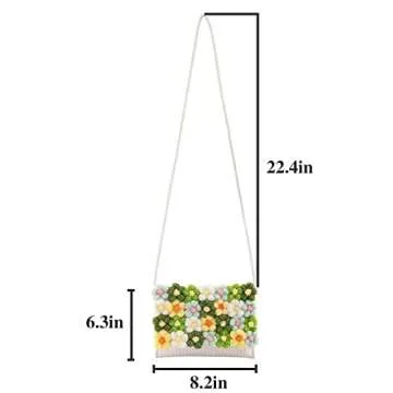 Ayliss Women's Handwoven Crossbody Handbag Small Summer Beach Shoulder Handbag Woven Cotton Crochet Cute Flower Purse Bag (Rectangle White)