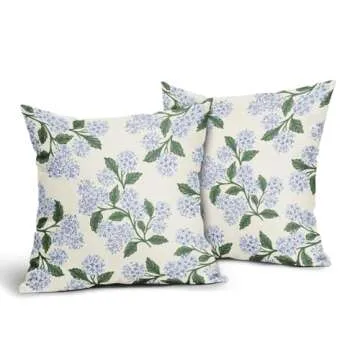 Aytipun Hydrangea Pillow Covers 18x18 Set of 2 Blue Floral Green Leaves Print Decorative Throw Pillowcases Outdoor Rustic Flower Farmhouse Spring Cushion Cases Decor for Home Couch Sofa Bed