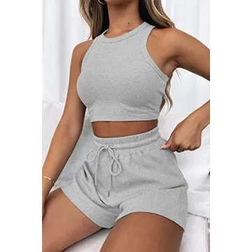 AYTOMET Womens 2 Piece Shorts Lounge Sets Two Piece Summer Workout Outfits Beach Vacation Trendy 2025 Clothes LightGrey S