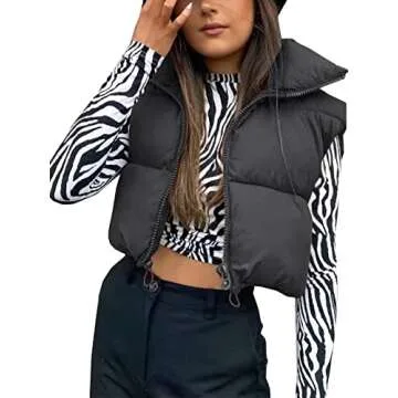 Ayturbo Women's Lightweight Cropped Puffer Vest Quilted Padded Zip Up Sleeveless Jacket(Black,S)