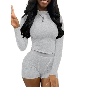 Show more Introducing the AYWA Women's 2 Piece Outfits, a versatile and stylish matching set that combines comfort with chic fashion. This set features a ribbed long sleeve fitted t-shirt paired with high-waisted leggings and shorts, perfect for creating a flattering silhouette while keeping you cozy. Its sophisticated Light Heather Grey color adds a touch of elegance to your casual wear, making it a must-have in your wardrobe for all seasons. Whether you're lounging at home, heading to the gym, or stepping out for errands, this outfit ensures you look effortless while feeling comfortable.