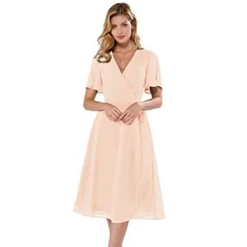 Show moreIntroducing the stunning new wrap midi dress from Azalosie, designed to make you feel chic and confident for any occasion. This dress features a wrap style front that provides a flattering silhouette that highlights your curves beautifully. With a removable sash belt and a lovely V neck design, this midi dress is perfect for those looking to embrace their style while feeling comfortable and sexy.