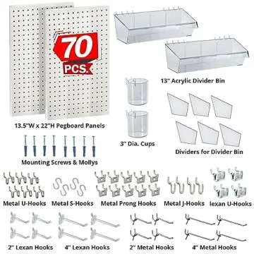 Azar Displays, 900945-WHT, 70 Piece Pegboard Organizer, Wall Mount Peg Board Combination Panel Kit for Bedroom, Craft Room, Study, Office or Garage, Assorted Accessories Hooks and Bins, 27"x22", White