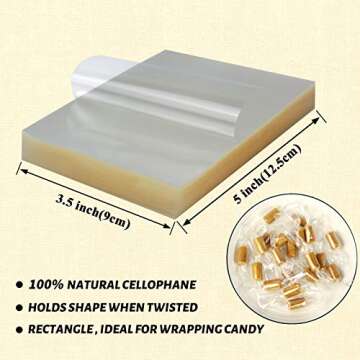 AZDVZD Candy Wrapper, Caramel and Chocolate Wrappers, Natural Cellophane, 500 Square Sheets,3.5x5 Inches,Candy Paper for Caramel, Treats, Lollipop