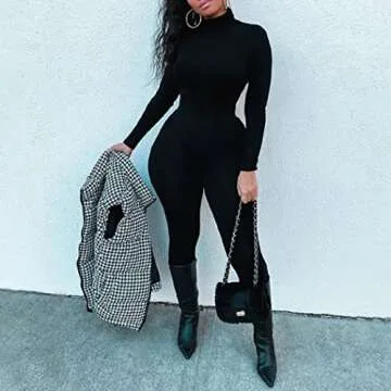 Show moreIntroducing the **Azhong Women's Sexy Long Sleeve Turtleneck Jumpsuit**, a stylish **one-piece ensemble** designed to elevate your casual and club attire. Crafted from a premium blend of **Polyester and Spandex**, this jumpsuit offers unmatched comfort while hugging your curves in all the right places. Its lightweight yet warm fabric makes it an ideal choice for the cooler seasons, ensuring you stay cozy without sacrificing style.