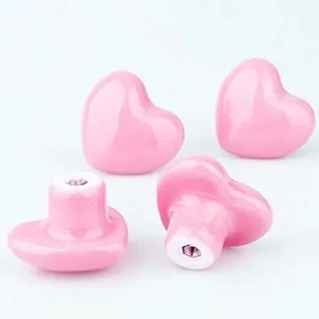 Show more Transform your living space with the delightful charm of our Pink Heart Ceramic Knobs. These whimsical knobs feature a heart shape, making them the perfect accessory to add a romantic touch to various settings in your home. Made from high-quality ceramic, each knob showcases a stunning pink hue that instantly brightens up your kitchen décor, bathroom decor, kids room decor, or nursery decor. Crafted with attention to detail, these knobs boast a vintage-inspired design that is ideal for those seeking a chic and charming cabinet makeover or stylish furniture upgrade.