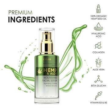 Azure Cosmetics Hemp & Aloe Face Serum for Wrinkles & Hydration - 1.69 fl oz