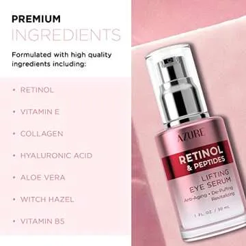 Azure Cosmetics Retinol & Peptides Lifting Eye Serum - Anti Aging, De-Puffing & Revitalizing Dark Circle Corrector - Reduces Wrinkles, Fine Lines & Under Eye Bags - Made in Korea - 30mL / 1 fl.oz.