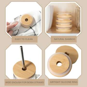 B&B Farmhouse Glass Cups with Lids and Straws - Mason Jars with Straw Lid - Overnight Oats Containers with Lid - Perfect Airtight Glass Jars for Meal Prep, Coffee, and Overnight Oats Storage
