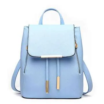 B&E LIFE Fashion Shoulder Bag Rucksack PU Leather Women Ladies Backpack Travel bag (Sky Blue)
