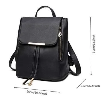 B&E LIFE Fashion Shoulder Bag Rucksack PU Leather Women Ladies Backpack Travel bag (Black)