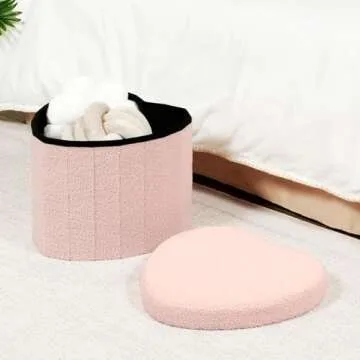 B FSOBEIIALEO Storage Ottoman Cube - Heart Shaped Footrest in Soft Pink