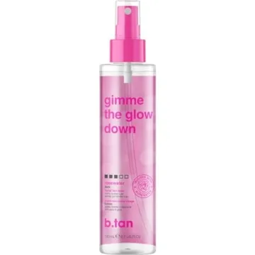Show more Unlock the secret to a flawless summer glow with the b.tan Clear Face Tan Mist - Gimme The Glow Down. This revolutionary product is your go-to solution for acquiring a natural-looking tan without stepping into the sun. Designed for beauty enthusiasts and on-the-go individuals alike, this gradual bronzing tanning water allows you to customize your tan with ease, thanks to its buildable color feature. Infused with soothing rosewater, it not only delivers a beautiful bronze but also nourishes your skin, leaving it feeling hydrated and radiant.