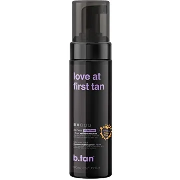 Show more Transform your self-tanning game with the b.tan Violet Base Self Tanner Mousse. This expertly formulated tanning mousse, celebrated for its ability to create a gorgeous, natural-looking bronzed glow within just one hour, is perfect for those seeking to elevate their sunless tanning experience. Unlike typical tanners that leave users with an unwanted orange hue, b.tan utilizes a unique violet base to neutralize those tones, ensuring a deep, dark tan that enhances your skin's natural beauty. You can enjoy the flexibility of customizing your tan; simply leave it on for a minimum of 1 hour for a light shimmer, up to 4 hours for a deeper, richer glow, or even longer if you dare!