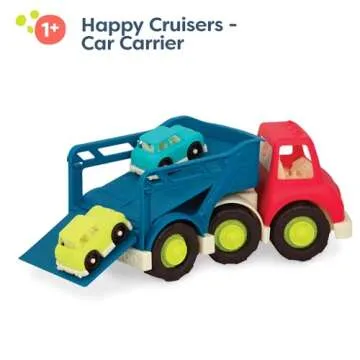 B. Toys – Car Carrier Truck – Toy Car Carrier – 2 Mini Cars – Toy Trucks for Toddlers, Kids – 12 Months + – Happy Cruisers - Car Carrier