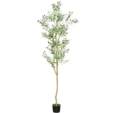 Show moreTransform your indoor space with the exquisite beauty of the LOVMOR 7.9ft Artificial Olive Tree. This stunning faux plant perfectly mimics the serene elegance of a real olive tree, making it the ideal choice for those who seek to enhance their home decor without the burden of maintenance. Crafted with care, each leaf showcases intricate detailing, giving it an organic flair that brings the essence of nature directly into your living room, office, or any corner of your home. With its lush, green foliage standing tall at 7.9 feet, this artificial olive tree creates an immediate focal point, providing endless decor possibilities.
