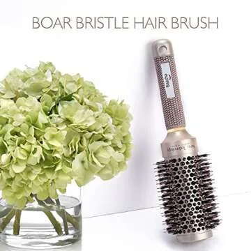 Baasha 2 Inch Medium Round Boar Bristle Ceramic Barrel Hair Brush for Women - Ideal for Blow Drying and Flipping Medium Length Hair