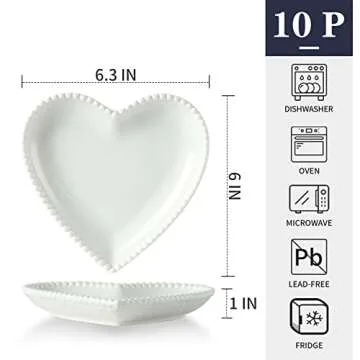 BABALIU 6.3 Inch Porcelain Appetizer Plates Set of 10, Heart Shape Small Dinner Plates, White Dessert Salad Plates Serving Dishes for Cake, Snack, Ice Cream, Waffles, Microwave, Oven, Dishwasher Safe