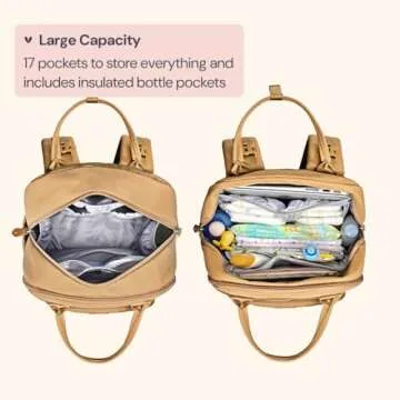 BabbleRoo Diaper Bag Backpack - Baby Essentials Travel Tote - Multi function Waterproof Diaper Bag, Travel Essentials Baby Bag with Changing Pad, Stroller Straps & Pacifier Case - Unisex, Beige