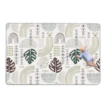 Show moreDouble the Joy with Reversible Designs - Our play mats boast playful monstera leaves and rainbow geometric lines on one side, stimulating cognitive development, while the other side features a modern minimalist pattern to complement your home décor effortlessly. Safety First - Made of high density XPE foam, our baby mat for floor is soft enough to protect your little one from hard floors. It provides your baby with extra cushioning to avoid potential shock and injuries from crawling, walking, tumbling and falling, so that your baby can have a soft and safe space to grow up. Enough Space for Babies and Toddlers - With dimensions of 78" x 50" x 0.4", our play mat offers plenty of room for your little one to explore, play, and rest comfortably. Keep playtime safe and enjoyable with our versatile, reversible, and foldable baby floor play mat and tummy time mat. Waterproof & Easy Cleanup - With a waterproof surface,The baby floor play mat can just wipes clean with a damp cloth easily, and crumbs shake off effortlessly. This play mat is perfect for busy parents seeking a hassle-free solution. Foldable and Portable - Crafted for on-the-go convenience, our foam play mat folds easily for storage and transportation. Now you can bring the joy of playtime with your little one wherever you go, ensuring endless moments of happiness and bonding.