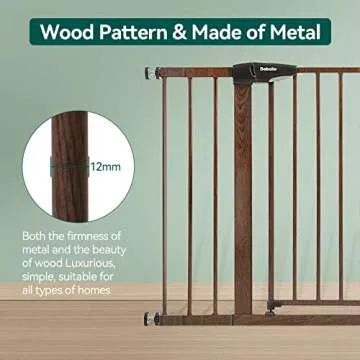 BABELIO 29-48" Metal Baby Gate with Brown Wood Pattern, Wide Dog Gate Pressure Mounted Pet Gate for Stairs & Doorways, with Y Spindle Rods and Wall Protectors