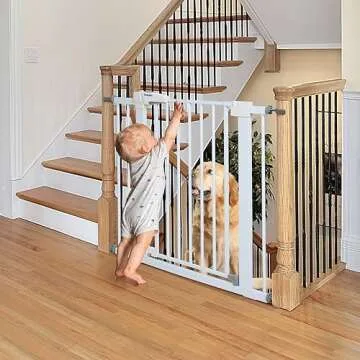Babelio Baby Gate for Doorways and Stairs, 26''-40'' Auto Close Dog/Puppy Gate, Easy Install, Pressure Mounted, No Drilling, fits for Narrow and Wide Doorways, Safety Gate w/Door for Child and Pets