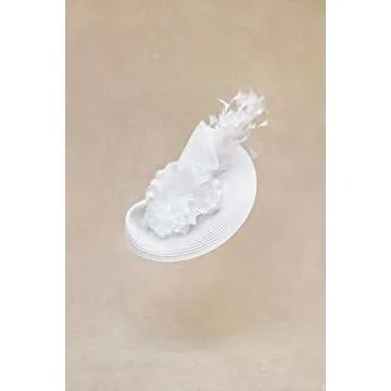 BABEYOND Tea Party Fascinator Hat for Women Kentucky Headwear Feather Derby Pillbox Wide Church Hat for Cocktail Wedding White