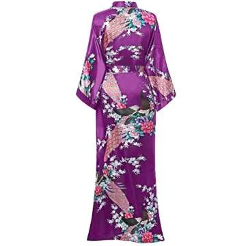 Elegant BABEYOND Women's Kimono Robe - Long Satin Silky Robes with Peacock Print