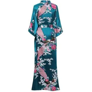 BABEYOND Women's Kimono Robe Long Satin Silky Robes with Peacock and Blossoms Printed Kimono Nightgown