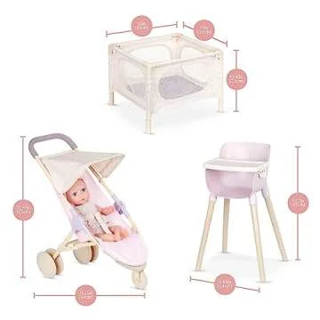 Babi by Battat – Doll Nursery Playset Playpen, High Chair,Jogger Stroller Accessories 14-inch Baby Girl Medium-Light Skin Tone Bright Blue Eyes & Removable Outfit Children’s Toys for Ages 2+