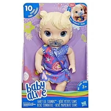 Baby Alive Baby Lil Sounds: Interactive Baby Doll for Girls & Boys Ages 3 & Up, Makes 10 Sound Effects, Including Giggles, Cries, Baby Doll with Pacifier, Blonde