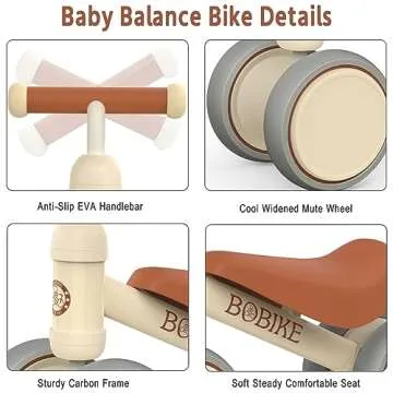 When analyzing the Baby Balance Bike against competitors, this toy stands out due to its robust safety features and superior design. While many similar products lack rigorous safety certifications, our bike adheres to both ASTM and EN71 standards. Also, unlike other bikes that may require complex assembly, our bike is user-friendly, ensuring a smooth setup process without hassle. The bonus of its high-quality steel frame and enhanced comfort sets our balance bike a step above in promoting a stress-free riding experience.