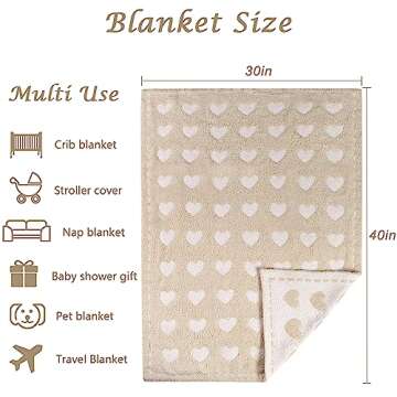 Baby Blankets for Girls Boys Toddler Double-Sided Heart Blanket,40"X 30"Soft Plush Crib Blanket Fluffy Baby Quilt Newborn Stroller Blanket,Stone