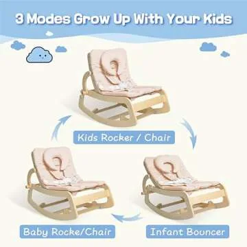 Show moreIntroducing the **Baby Bouncer**, an exceptional 3-in-1 wooden rocker chair designed for your little one's comfort and safety. This remarkable piece combines functionality, style, and quality, making it the perfect addition to any nursery, regardless of decor. Crafted from premium pine and birch wood, the Baby Bouncer offers a durable and elegant alternative to traditional plastic baby gear. With its neutral beige finish, it seamlessly blends into your home while providing a cozy retreat for your baby.