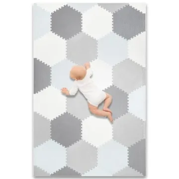 Show more Introducing the **Baby Brielle Soft Non-Toxic Extra Thick Interlocking Hexagon Foam Flooring**, designed for discerning parents who prioritize both safety and style for their little ones. Crafted with premium high-density closed-cell polyethylene, this mat promises a nurturing space where babies and toddlers can crawl, play, and explore without compromise. Measuring a generous 70.5" x 46" when assembled, it's spacious enough for engaging activities while also maintaining a chic, neutral aesthetic that blends beautifully with any home decor.