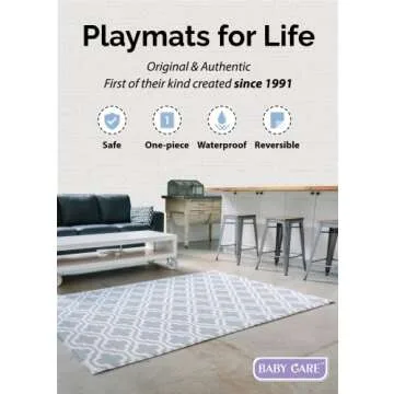 Baby Care Play Mat (Large, Moroccan - Blue) 82'' x 55'' Original One-Piece Reversible Rollable Waterproof Play Mat for Infants, Babies, Toddler, and Kids