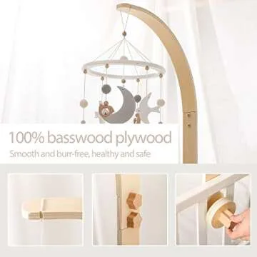 Show more Introducing the perfect accessory for your baby's crib: a beautifully crafted crib mobile holder made from eco-friendly basswood plywood. This charming addition not only enhances the aesthetic of your nursery but also provides a soothing atmosphere for your little one. Its natural finish offers a minimalist look that fits seamlessly into any décor, making it an ideal choice for parents who value both functionality and style.