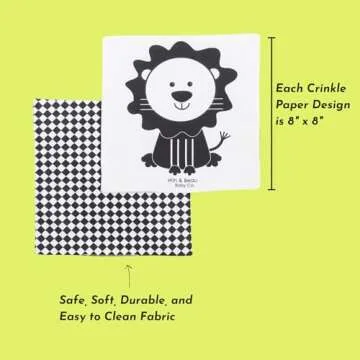 Show more Engage your little one with our high contrast baby crinkle toys, specially designed to create a captivating sensory experience. These playful toys feature adorable animals and vibrant black and white patterns that are sure to grab your infant's attention. Made from baby-safe materials, they ensure a gentle touch on delicate skin, perfect for tiny hands eager to explore.