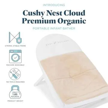 Baby Delight Cushy Nest Cloud Premium Organic Infant Bather | Baby Bath Seat | Comfortable Infant Bath Seat with Support | for Sinks and Tubs | Organic Oat