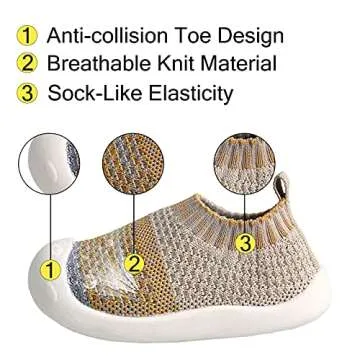 Baby First-Walking Shoes 1-4 Years Kid Shoes Trainers Toddler Infant Boys Girls Soft Sole Non Slip Cotton Mesh Breathable Lightweight Slip-on Sneakers Outdoor(Yellow,9 Toddler) T23
