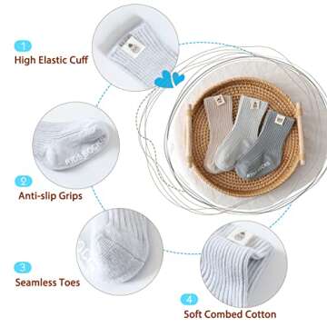 Baby Girl Boy Non Skid Crew Socks Toddler Infant Cotton Cartoon Socks 6 Pack, Assorted Color, 6-12 Months