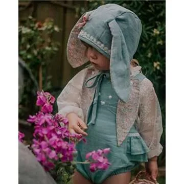 Baby Girl Easter Outfit Vintage Onesie Overalls and Bunny Ears/Toddler Dress Sister Mathing Clothes with Tail (Onesie Bunny Blue,12-18 Months)