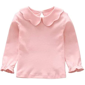 Show moreIntroducing the Baby Girl Kids Blouses Long Sleeves Solid Color Doll Collar T-Shirt Top Bottom in a delightful Pink hue, perfect for your little fashionista ages 2-3T! Crafted from a high-quality cotton blend, this shirt is designed to offer a luxurious soft touch against your baby’s delicate skin. The adorable doll collar adds a charming twist, making it a versatile piece for any occasion. With its comfortable fit, elastic ruffle cuffs, and practical pull-on closure, dressing has never been easier for both you and your little one. The button detail at the back further enhances its ease of wear, making this shirt suitable for everyday adventures, school uniforms, or layering beneath warmer outfits during chilly weather.