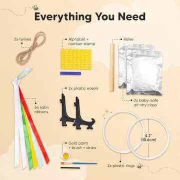 Not only is this kit ideal for babies, but it also doubles as a personalized baby print ornament maker. With the addition of bonus acrylic paint, a paintbrush, six satin ribbons, two twig strings, and alphabet stamps, your baby's first Christmas ornament can be uniquely crafted and treasured forever. This kit inspires creativity, allowing you to proudly display your child’s keepsake in any home.